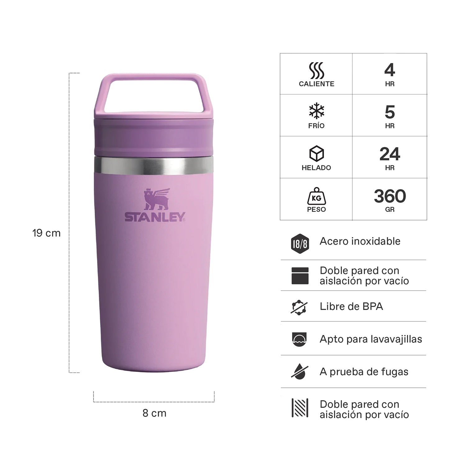 Compacta, práctica y con estilo que no pasa de moda, llega al portafolio el Mug Café Go: tiene 354 ml de capacidad, tapa antiderrame, asa para transportarla fácil y una boquilla de flujo moderado para tomar tranquilo