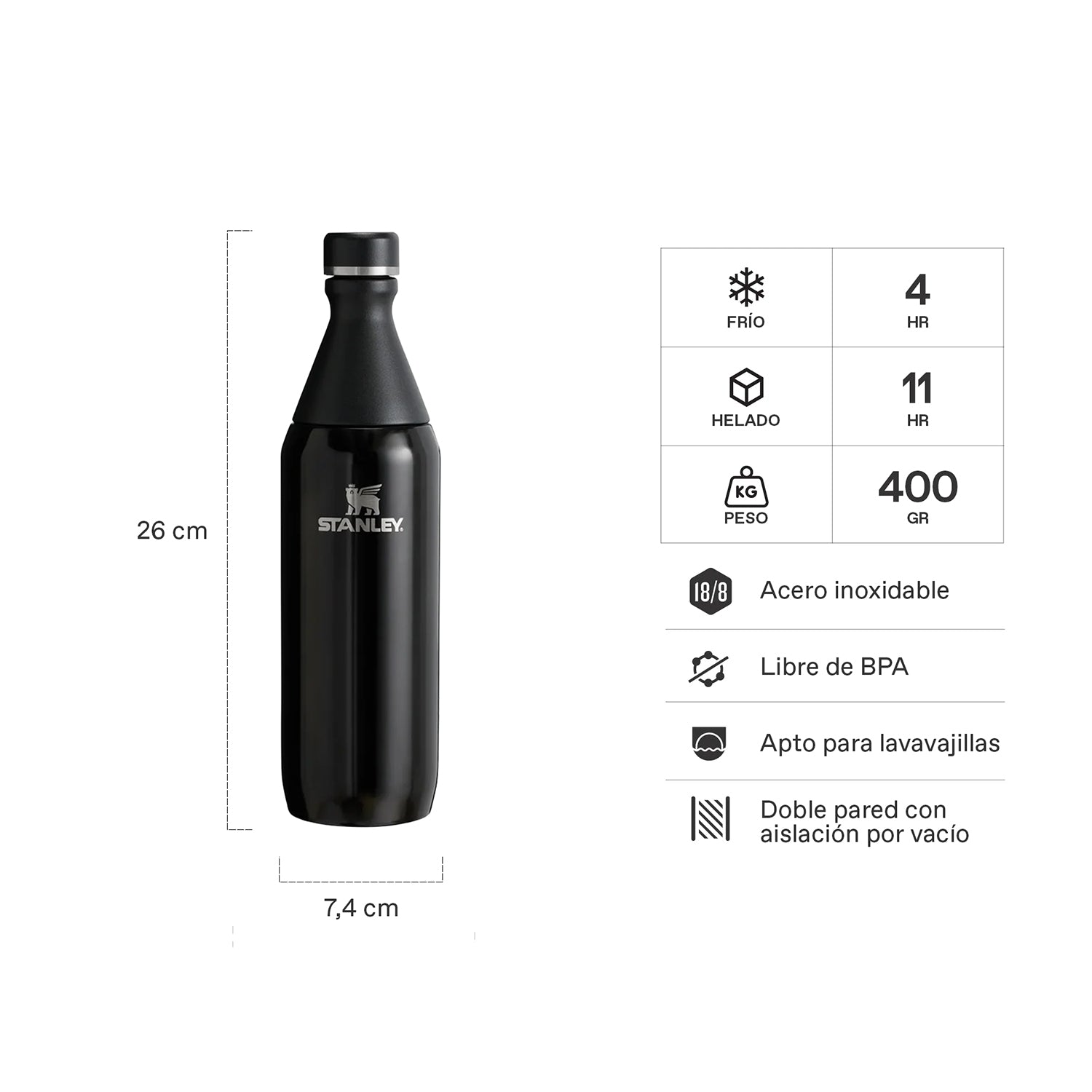 Con una forma icónica, el diseño delgado hace que sea fácil de transportar. Esta botella de agua tiene dos aperturas, la mas grande para poner hielo en la botella y la segunda para tomar directamente. La botella All Day Slim de 20 onzas es sustentable, aunque un poco inesperada. Solo dale unas vueltas al cuello para cerrarla y lograr un sello a prueba de fugas y destapa cada vez que necesites beber. La construcción de acero inoxidable proporciona sorbos helados durante horas. ¡Incluso puede contener una botella entera de vino! Ya sea que viva junto a tu bolso de playa o se convierta en tu favorito durante el vuelo, mantén la hidratación simple.