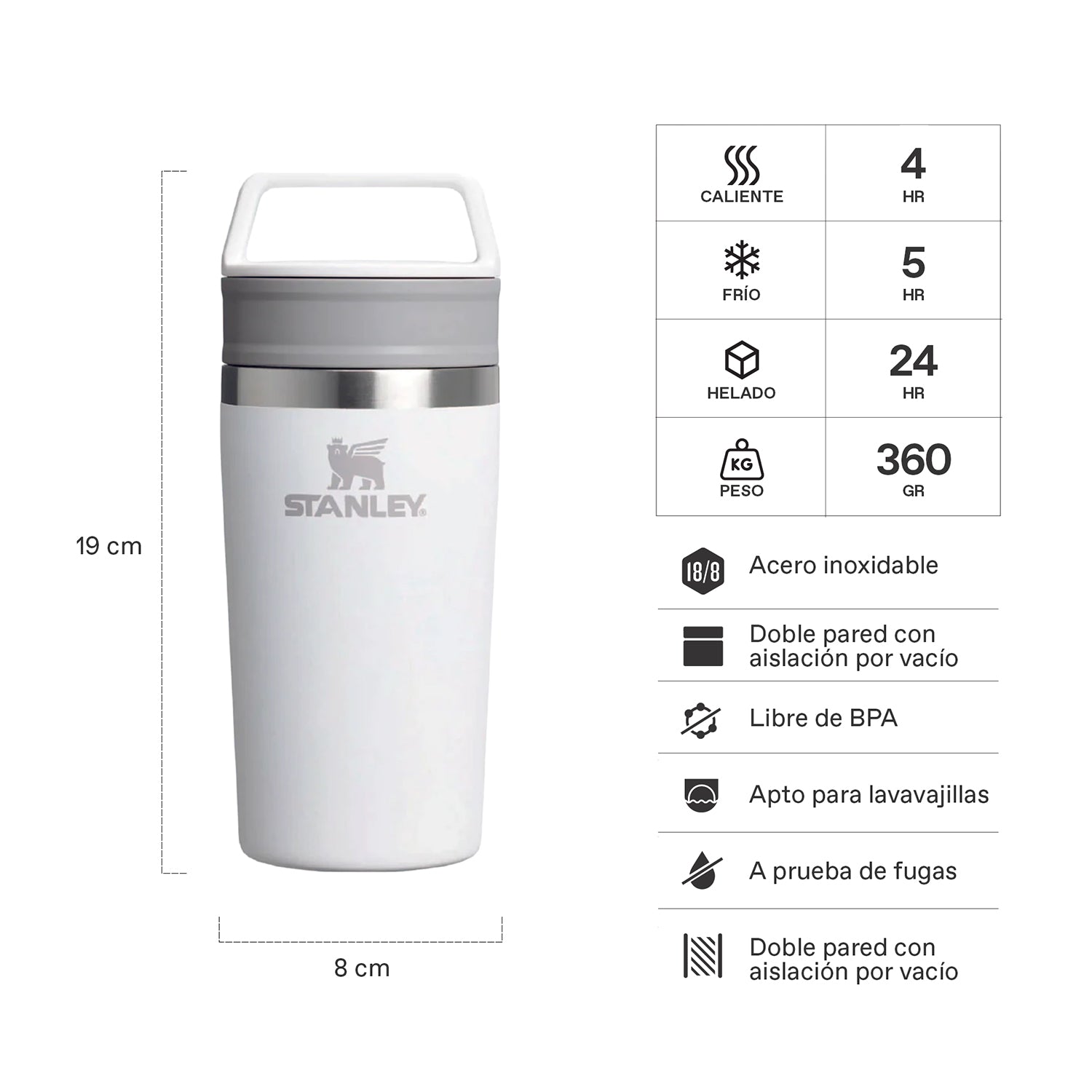 Compacta, práctica y con estilo que no pasa de moda, llega al portafolio el Mug Café Go: tiene 354 ml de capacidad, tapa antiderrame, asa para transportarla fácil y una boquilla de flujo moderado para tomar tranquilo