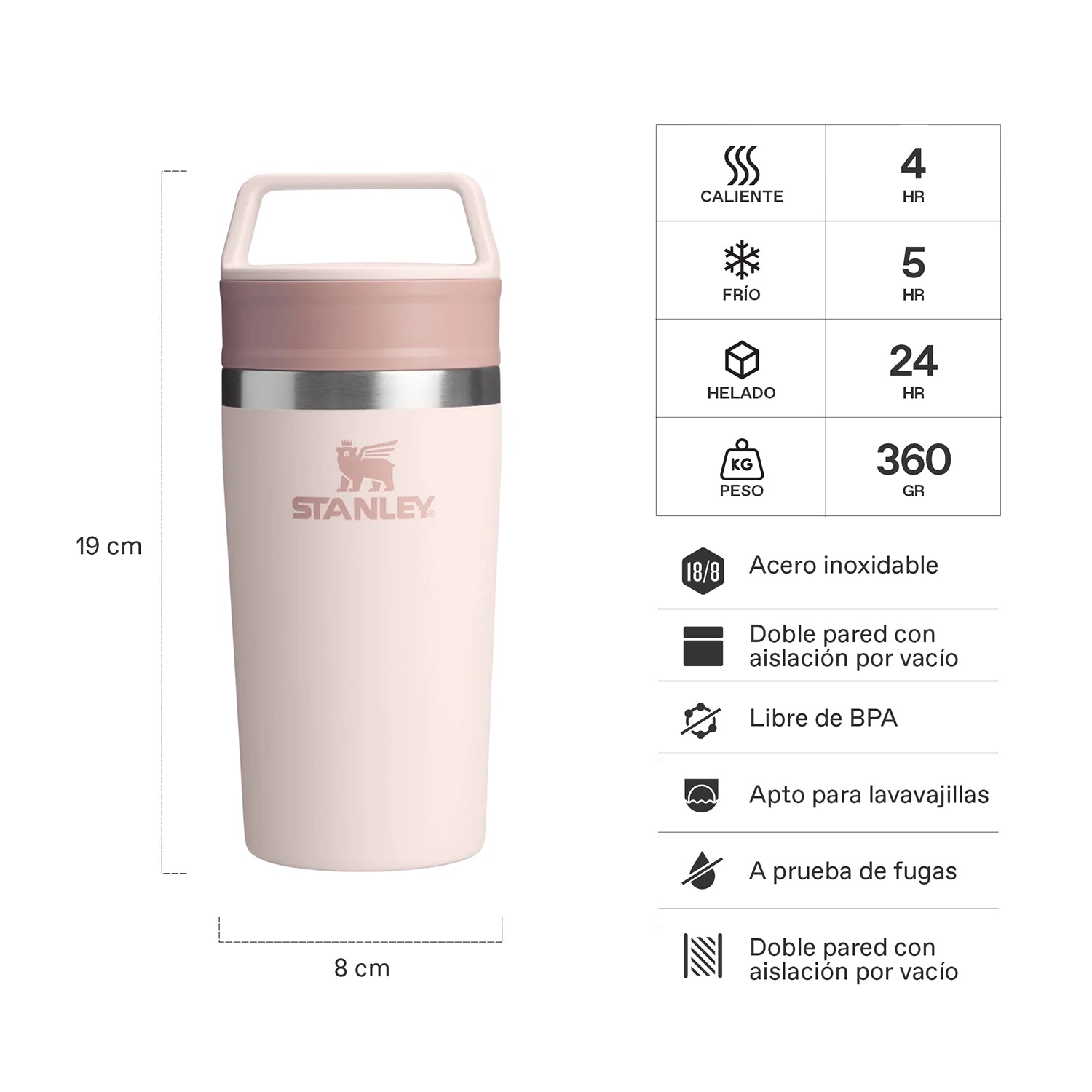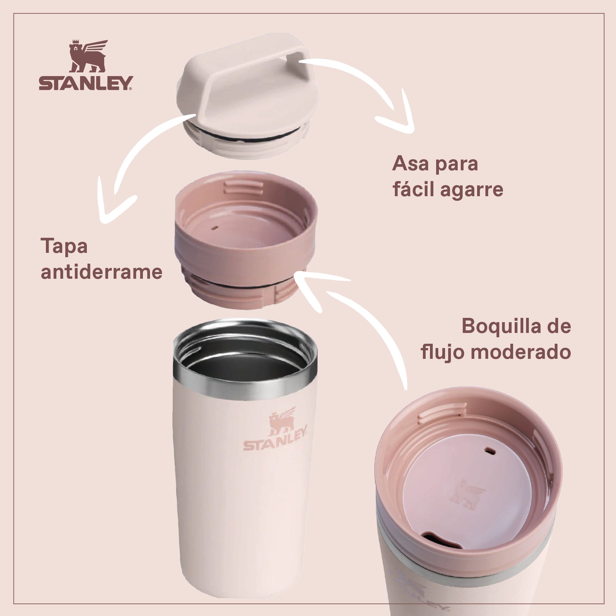 Compacta, práctica y con estilo que no pasa de moda, llega al portafolio el Mug Café Go: tiene 354 ml de capacidad, tapa antiderrame, asa para transportarla fácil y una boquilla de flujo moderado para tomar tranquilo
