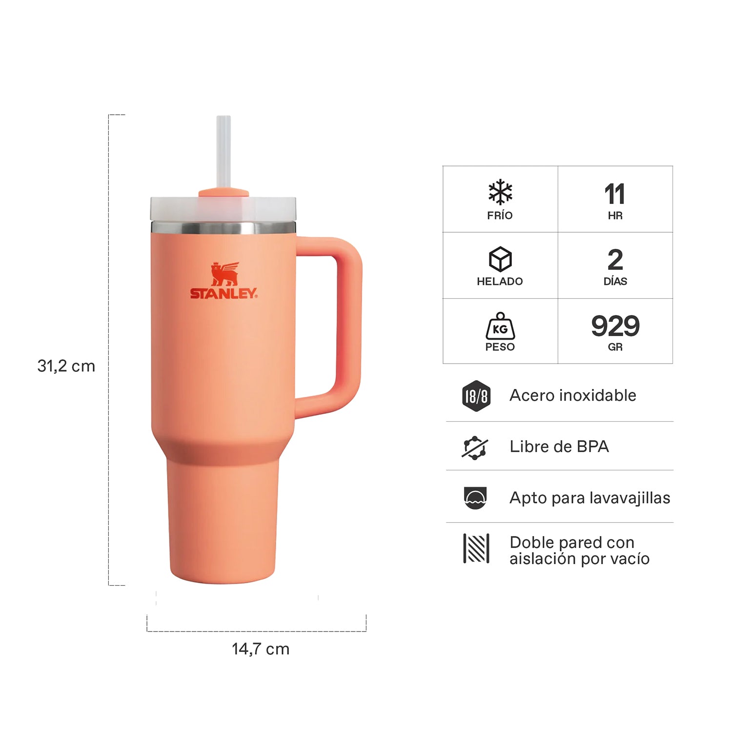 - El ícono de acero inoxidable reciclado dentro del vaso indica que tu Quencher está hecho de materiales sustentables