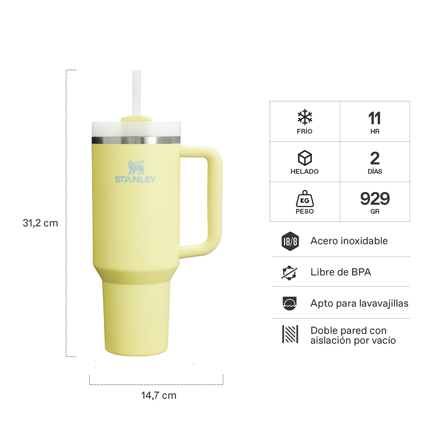 - El ícono de acero inoxidable reciclado dentro del vaso indica que tu Quencher está hecho de materiales sustentables