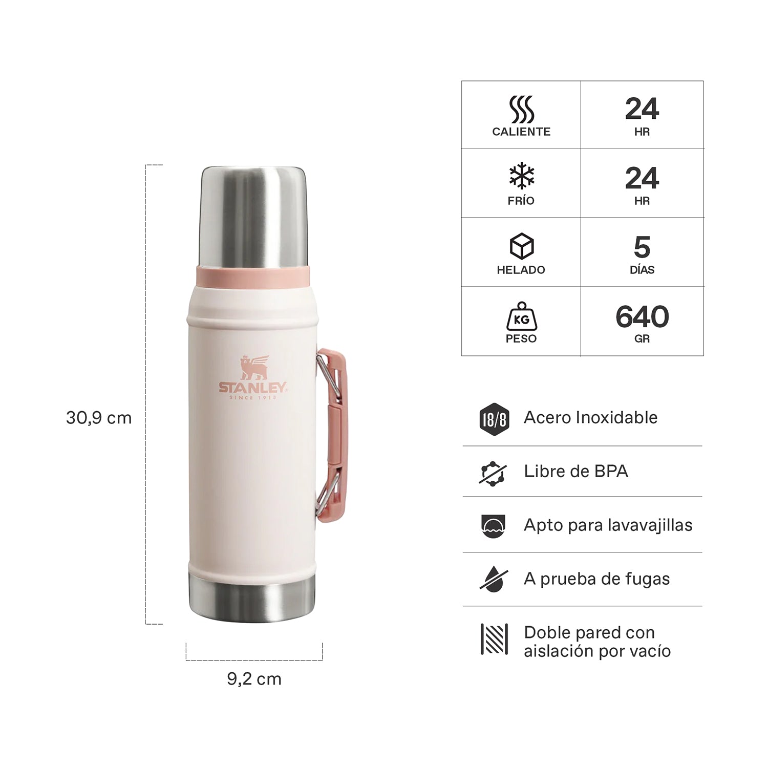El icónico termo Stanley de 950 ml ha marcado las aventuras al aire libre durante generaciones. Obtén este clásico y disfruta de una vida de bebidas calientes y recuerdos compartidos. Mantiene tus líquidos calientes o fríos durante 24 horas.