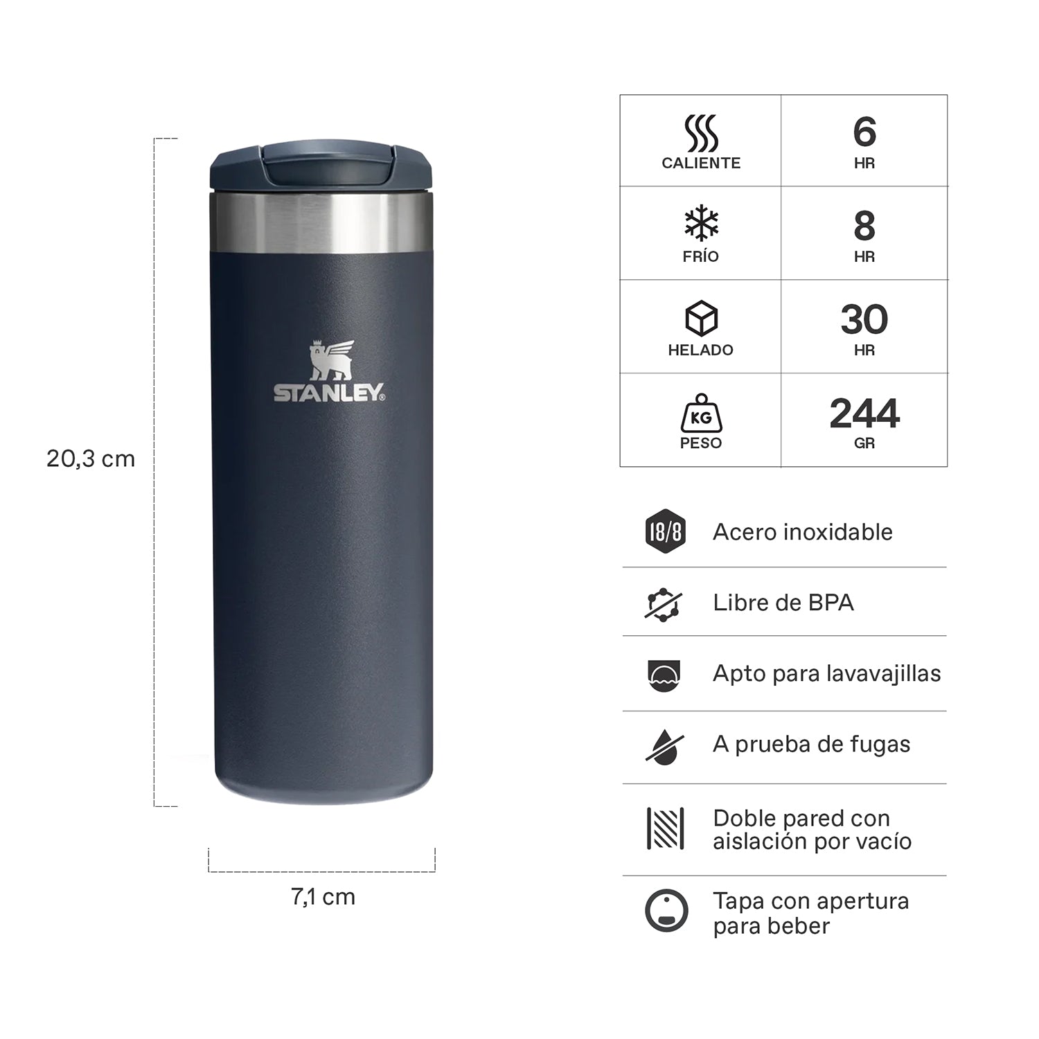 - Acero inoxidable 18/8, libre de BPA