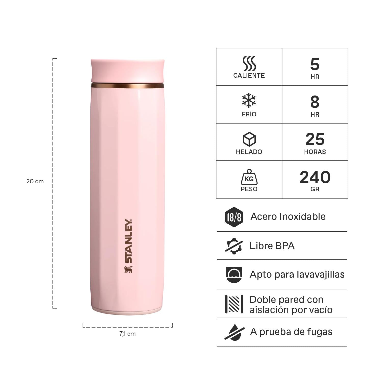 - Acero inoxidable 18/8; Libre de BPA.