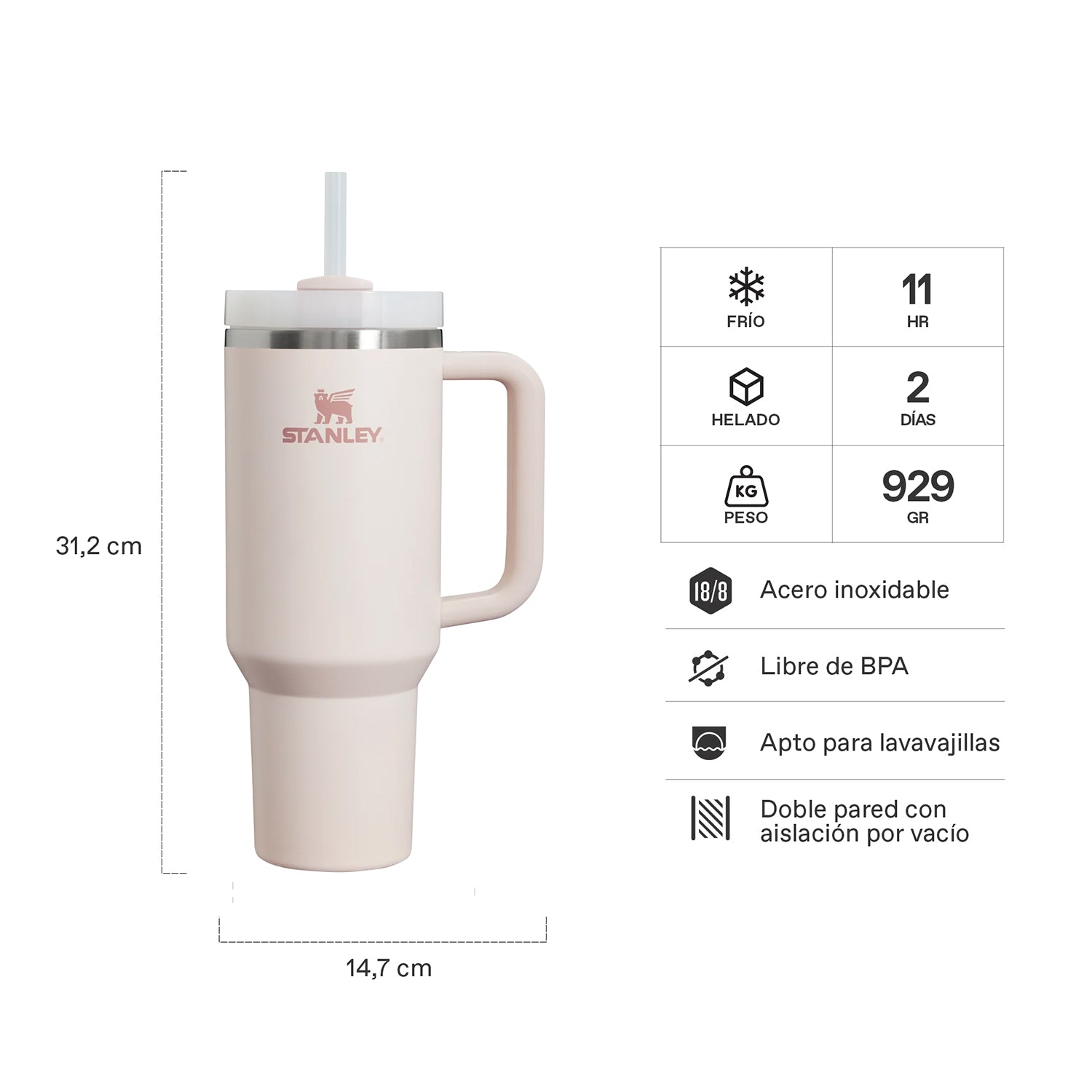 - El ícono de acero inoxidable reciclado dentro del vaso indica que tu Quencher está hecho de materiales sustentables