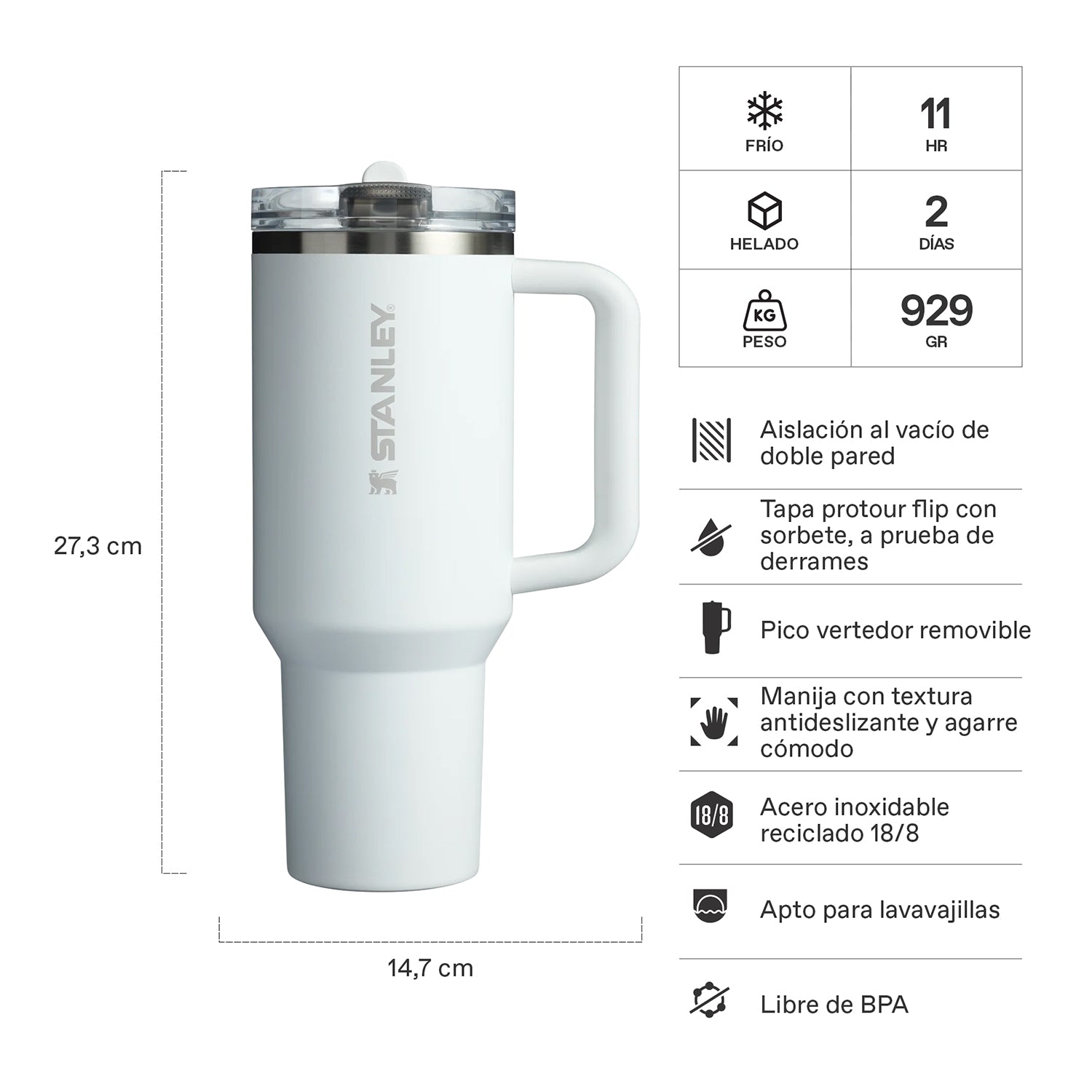 Mantiene 11 horas líquidos fríos y hasta 2 días congelado. No se usa con agua caliente.