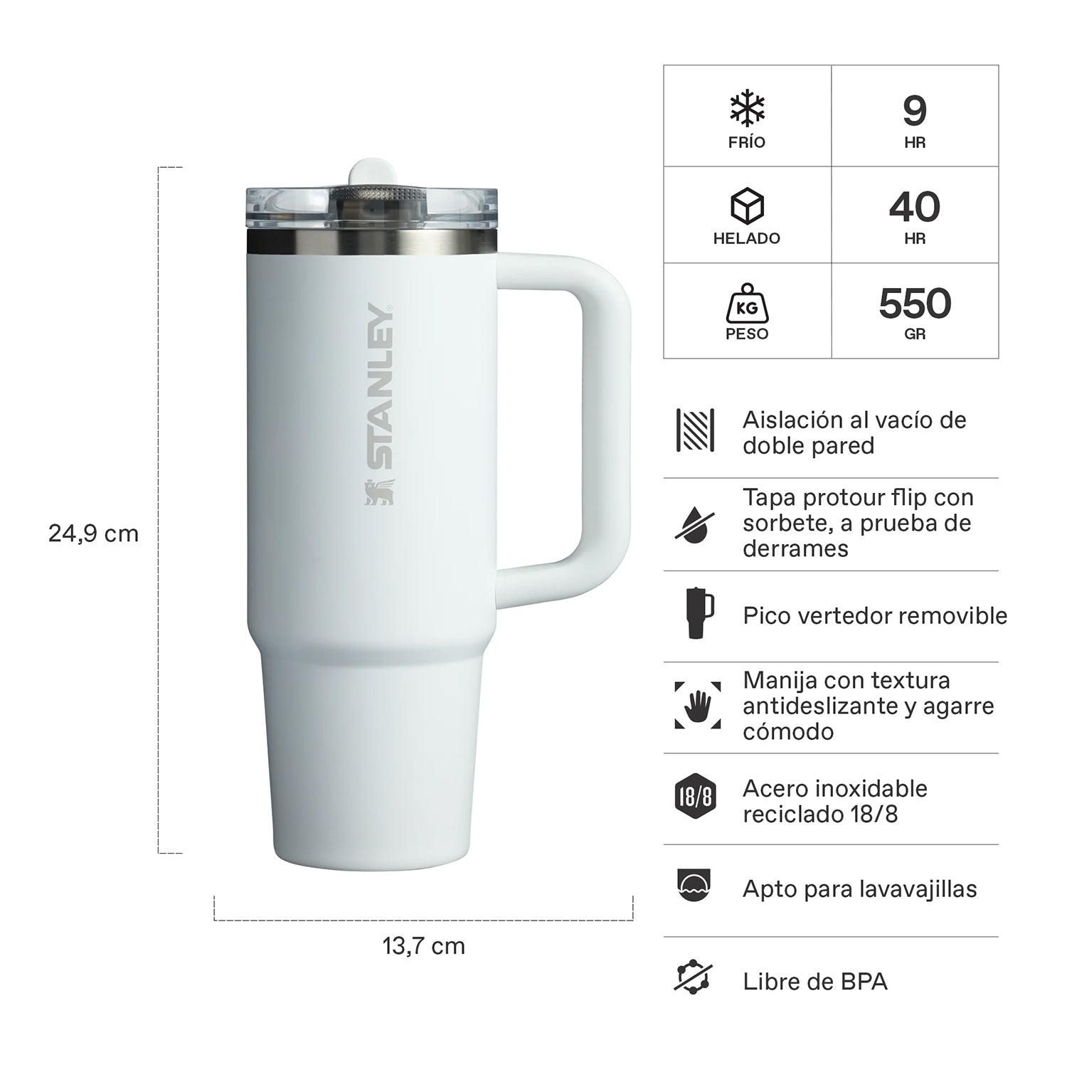 Presentamos el icónico Quencher, ahora con la tapa hermética ProTour Flip Straw. El vaso Quencher ProTour Flip Straw de 887 ml simplifica la hidratación: levanta la bombilla integrada para beber y ciérrala al terminar. Los colores clásicos presentan gráficos frescos, una textura suave en el asa y una tapa bicolor. El agua se mantiene helada durante horas gracias al aislamiento al vacío de doble pared. Está lista para tomar por su cómoda asa y cabe en el portavasos del auto.