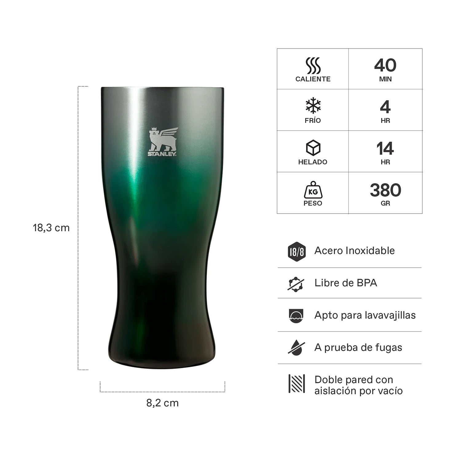 Si vas a levantar un vaso, que sea tu vaso Prismatic™. En la cocina, en un resort de montaña o disfrutando de tu fin de semana, este modelo está elegantemente diseñado con la innovación de Stanley. Una silueta esbelta se amolda a la forma de tu mano y una base de silicona antideslizante le otorga un apoyo suave en todo momento. En el interior, el diseño Prismatic presenta un efecto de prisma similar al vidrio para evocar las facetas de una piedra preciosa. Ya sea que esté reflejando la cálida iluminación de tu hogar o el suave brillo de una noche con amigos, este vaso siempre deslumbrará en tu mano.